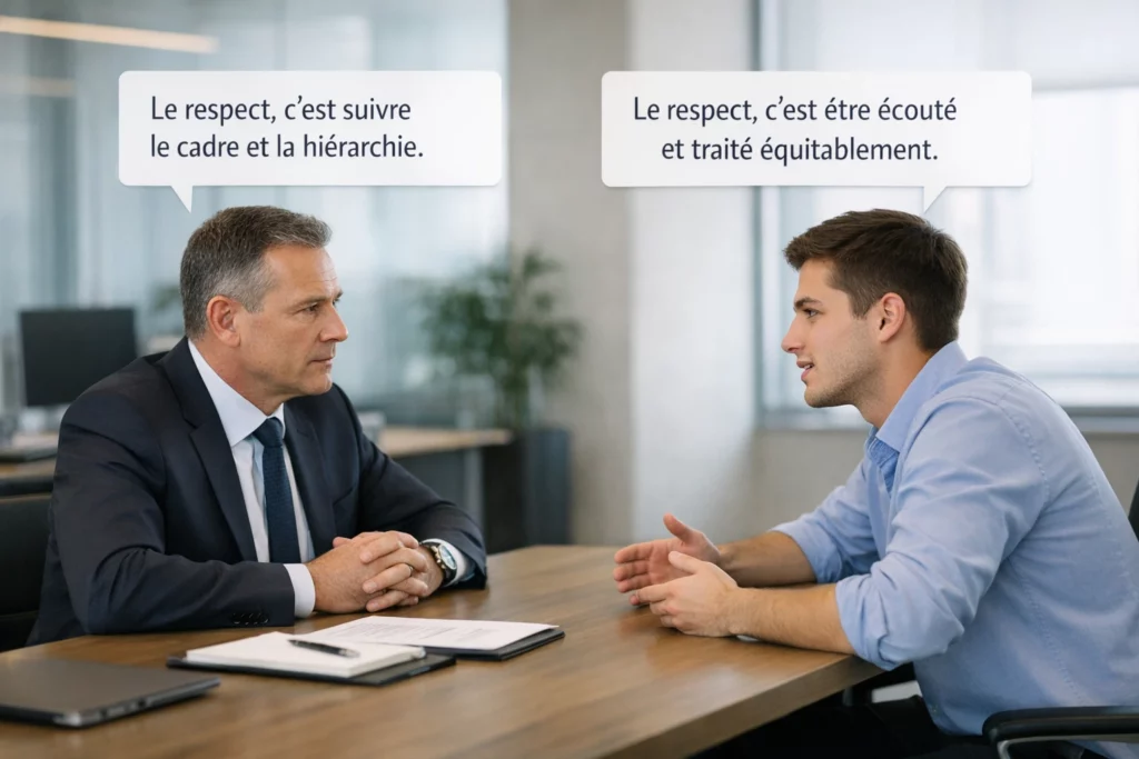 Par exemple, lors d’une réunion d’équipe, un manager peut être surpris qu’un jeune collaborateur contredise directement une décision ou pose des questions très franches. L’attitude peut être interprétée comme un manque de respect. Pourtant, du point de vue du collaborateur, il s’agit au contraire d’une manière de participer activement à la réflexion collective et d’améliorer la qualité des décisions.